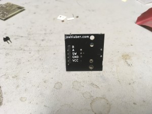 I created this breakout board that enables easy use and mounting of a mechanical rotary encoder. This kind of rotary encoder suffers from debounce problems. The easiest way to address it is to put a RC network on each leg of the rotary switch. This board has mounting holes in case one ends up using encoders that do not have threads.